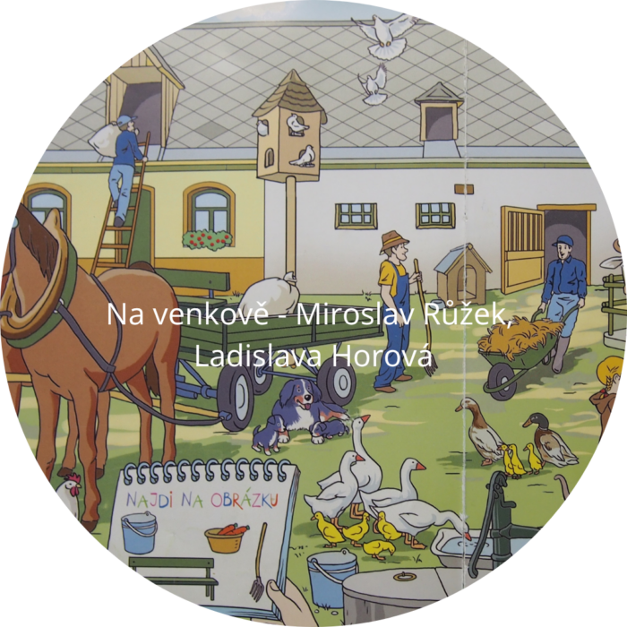 Zábavná knížka o životě na dnešním českém venkově děti provede životem na vsi. Tematické dvoustránkové obrázky s množstvím detailů věrně a s humorem zaznamenávají každodenní situace, např. práci na poli, masopust, zábavu u rybníka a zvířátka na statku. Krátké básničky a zajímavé úkoly jsou inspirací a motivací pro chvíle společně strávené s dětmi nad knihou.